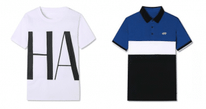 The style of T-shirts is complex and changeable, focusing on fashion, leisure, unrestrained, random color matching, and color collision changes. Compared with T-shirts, POLO shirts are simple, formal, and solemn in style. T-shirts usually have a variety of different colors of cloth cutting, color collision, or color printing of different patterns, while POLO shirts are generally single, classic and dignified. As the picture shows: